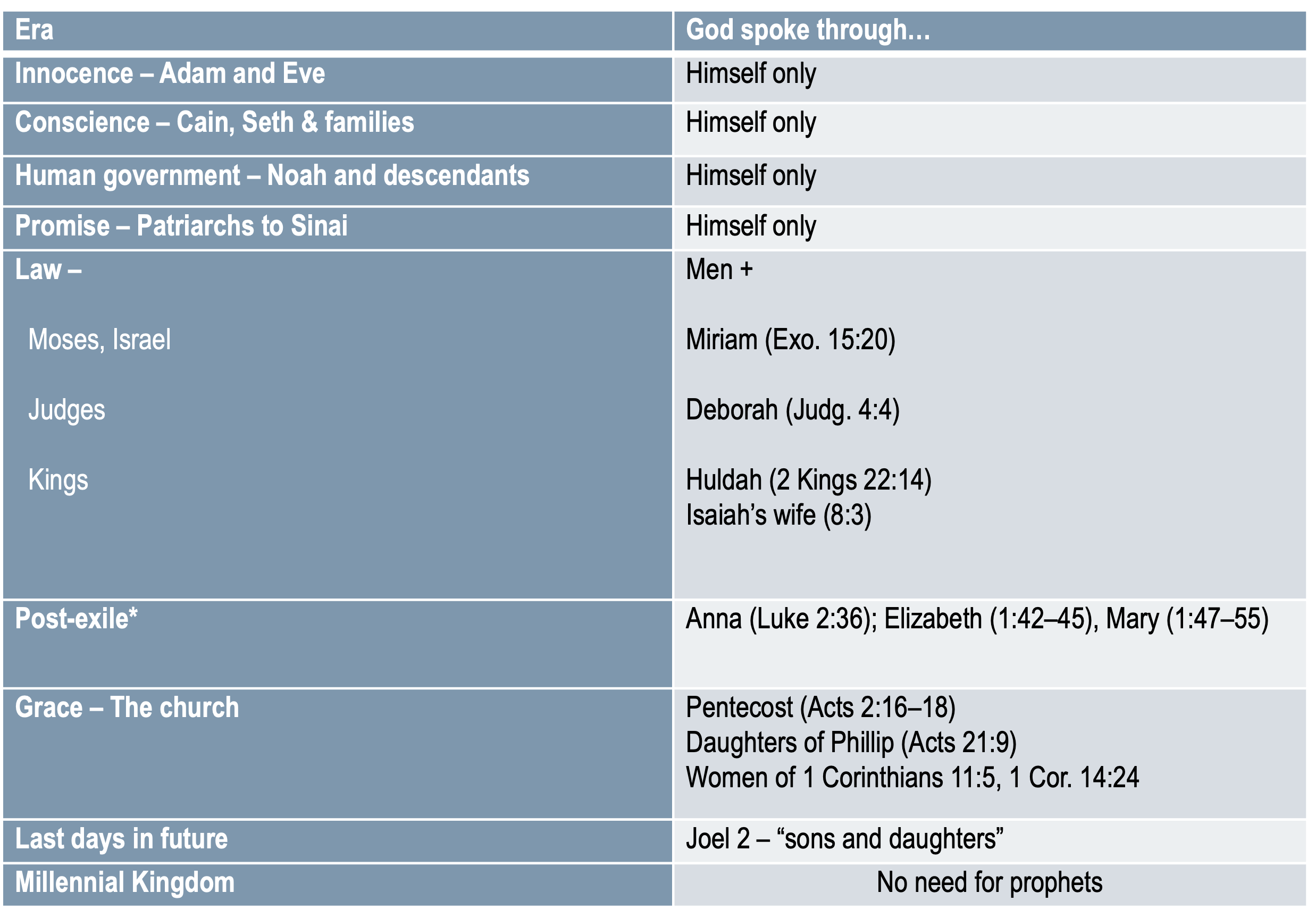 Throughout salvation history the Holy Spirit blessed women with prophetic speech. On the day of Pentecost women’s public proclamation from God was a sign not of male failure but rather the presence of the Holy Spirit. If we are to read 1 Timothy 2 saying “Adam was first” as a “for all time prohibition grounded in creation,” how are we to synthesize such an interpretation with numerous other scriptures that tell us God raised up women to speak for him publicly?